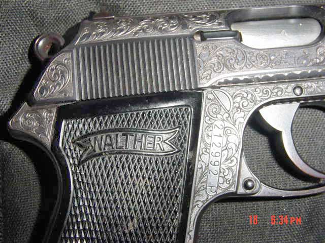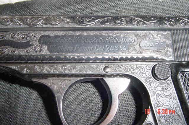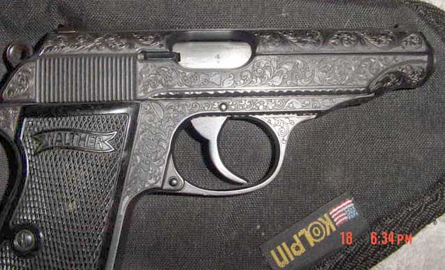 I have a Walther PP that I purchased. I've done research in blue book and online but cannot find the origin or engraver of this gun. It looks to be WWII has a Nazi eagle (Nitro I think). This appears to have been done during fabrication, but possibly post production. If anyone can provide details or has any knowledge in this area, please post in the forum.