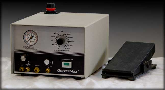 GraverMax, 2 handpieces (910 and 710 I believe), Power Hone, Ceramic Lap, 260 grit wheel, 600 grit wheel, standard sharpening fixture, chasing hammer, 3 sharpened gravers, 6 quick release graver holders, 2” x 6” practice plates (5), 2” x 2” practice plates (4), etc. See the photos.